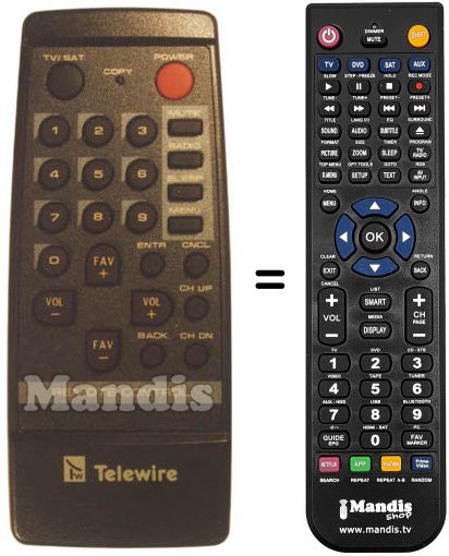 Télécommande qui remplace celle d'origine car elle possède les mêmes fonctions.