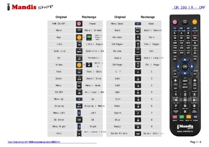 Un document est inclus pour vous aider à utiliser facilement la nouvelle télécommande, en indiquant la correspondance des boutons.