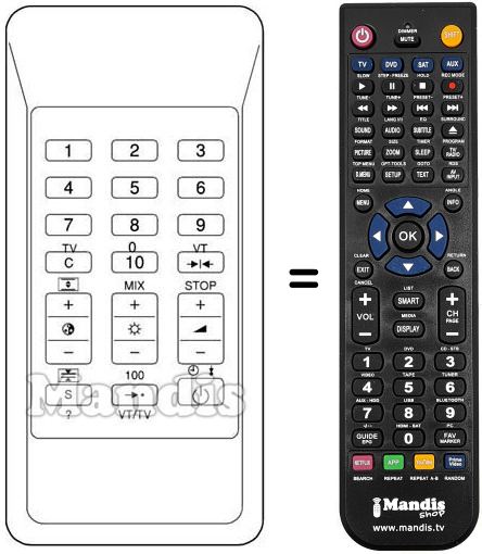 Télécommande qui remplace celle d'origine car elle possède les mêmes fonctions.