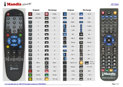 Cette télécommande remplace entièrement votre RT7369 (RT7369M) et offre toutes les fonctions de l'originale.