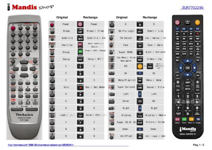 Un document est inclus pour vous aider à utiliser facilement la nouvelle télécommande, en indiquant la correspondance des boutons.
