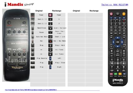 Un document est inclus pour vous aider à utiliser facilement la nouvelle télécommande, en indiquant la correspondance des boutons.
