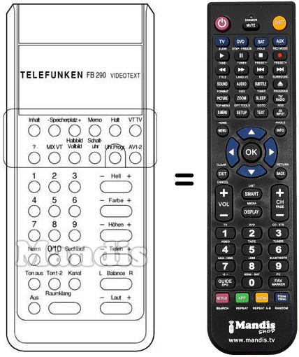 Télécommande qui remplace celle d'origine car elle possède les mêmes fonctions.