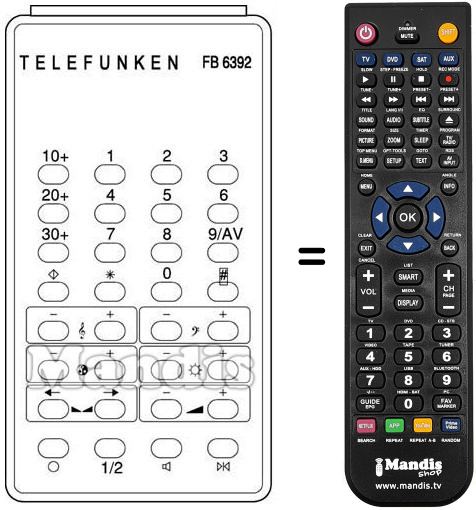 Télécommande qui remplace celle d'origine car elle possède les mêmes fonctions.