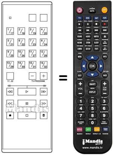Télécommande qui remplace celle d'origine car elle possède les mêmes fonctions.