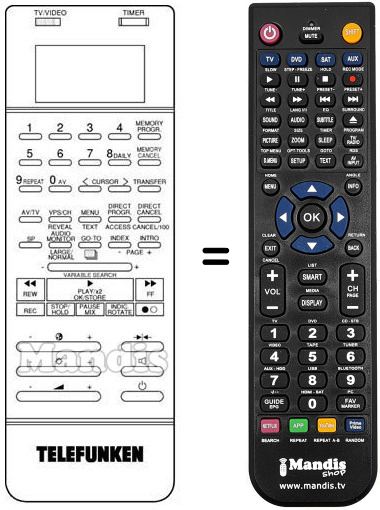 Télécommande qui remplace celle d'origine car elle possède les mêmes fonctions. Il ne s'agit pas d'une télécommande universelle mais d'une télécommande qui remplace celle d'origine. Vous recevrez la télécommande prête à fonctionner, vous n'aurez qu'à mettre les piles. Il n'est pas nécessaire de la programmer. Nous vous garantissons que la télécommande aura exactement les mêmes fonctions que celle d'origine.