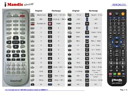 Cette télécommande remplace entièrement votre REMCON1155 et offre toutes les fonctions de l'originale.