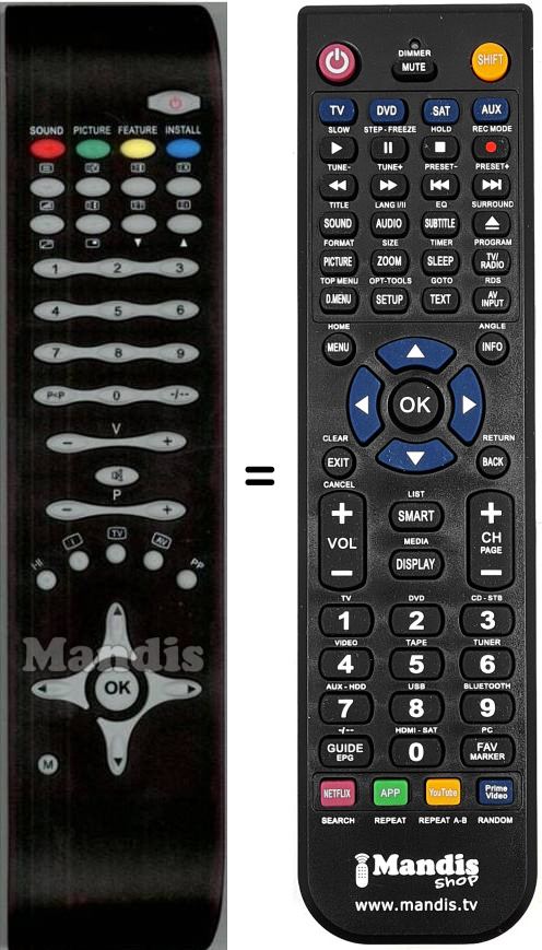Télécommande qui remplace celle d'origine car elle possède les mêmes fonctions.