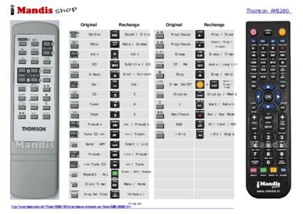 Question sur Thomson AM1280 (35585950) remote control