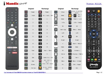 Un document est inclus pour vous aider à utiliser facilement la nouvelle télécommande, en indiquant la correspondance des boutons.