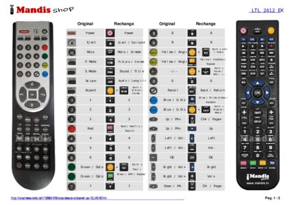 Un document est inclus pour vous aider à utiliser facilement la nouvelle télécommande, en indiquant la correspondance des boutons.