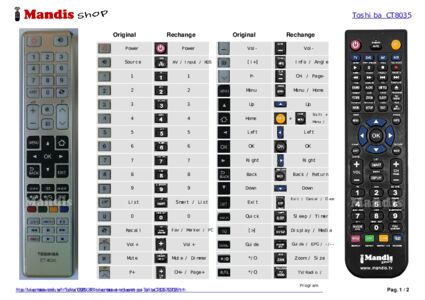 Un document est inclus pour vous aider à utiliser facilement la nouvelle télécommande, en indiquant la correspondance des boutons.