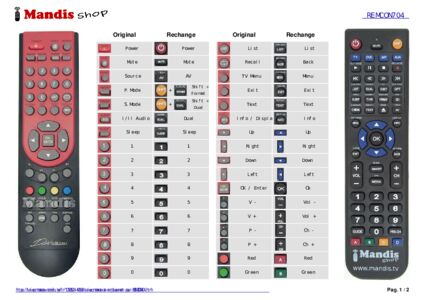Un document est inclus pour vous aider à utiliser facilement la nouvelle télécommande, en indiquant la correspondance des boutons.