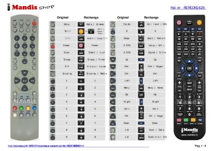Un document est inclus pour vous aider à utiliser facilement la nouvelle télécommande, en indiquant la correspondance des boutons.
