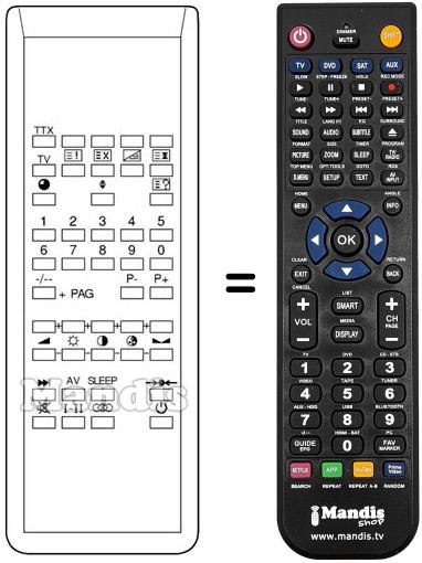 Télécommande qui remplace celle d'origine car elle possède les mêmes fonctions.