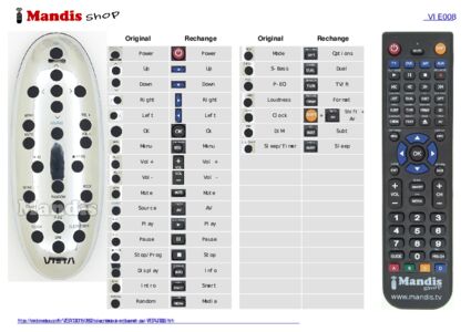 Cette télécommande remplace entièrement votre VIE008 et offre toutes les fonctions de l'originale.