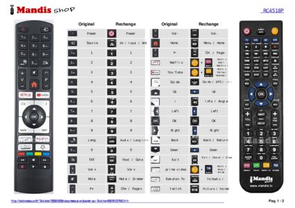 Un document est inclus pour vous aider à utiliser facilement la nouvelle télécommande, en indiquant la correspondance des boutons.