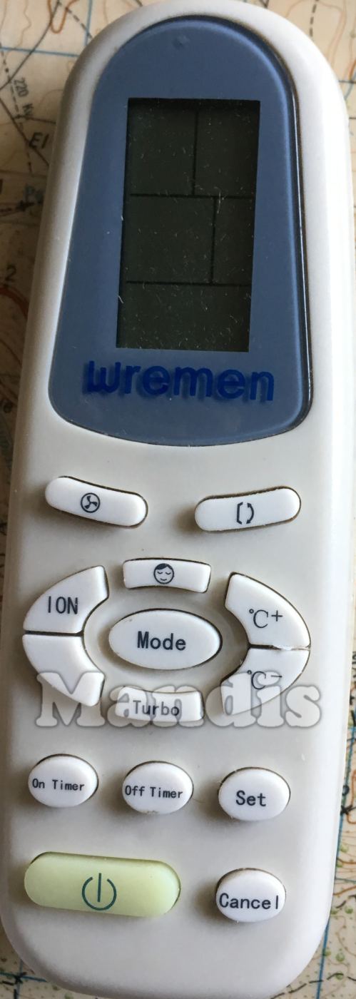 Télécommande d'origine WRE001 pour climatisation de la marque WREMEN. Il s'agit d'un modèle de télécommande d'origine.