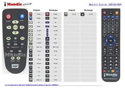 Accueil > Marques > Télécommandes Western Digital > Télécommande pour Western Digital WDTV001RNN