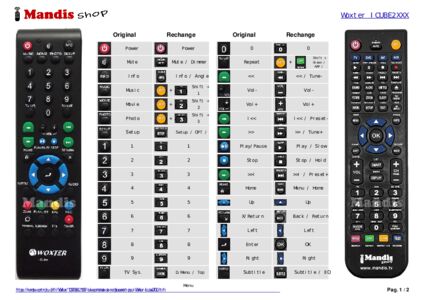 Un document est inclus pour vous aider à utiliser facilement la nouvelle télécommande, en indiquant la correspondance des boutons.