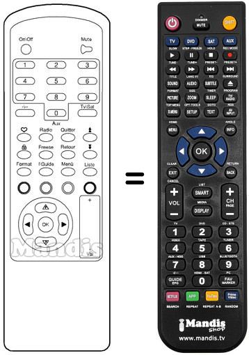 Télécommande qui remplace celle d'origine car elle possède les mêmes fonctions. Il ne s'agit pas d'une télécommande universelle mais d'une télécommande qui remplace celle d'origine. Vous recevrez la télécommande prête à fonctionner, vous n'aurez qu'à mettre les piles. Il n'est pas nécessaire de la programmer. Nous vous garantissons que la télécommande aura exactement les mêmes fonctions que celle d'origine.
