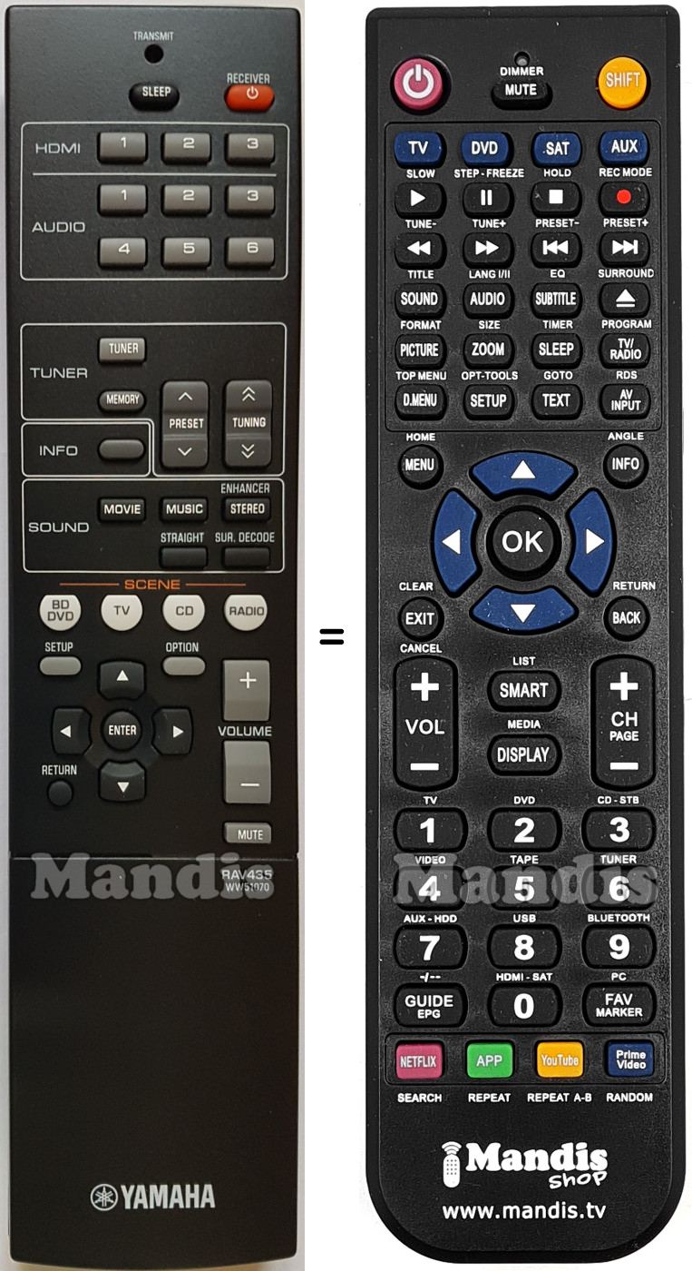 Cette télécommande remplace entièrement votre RAV435 (WW510700) et offre toutes les fonctions de l'originale.