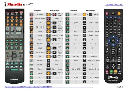Un document est inclus pour vous aider à utiliser facilement la nouvelle télécommande, en indiquant la correspondance des boutons.
