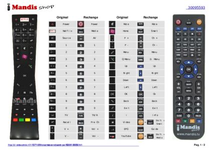 Un document est inclus pour vous aider à utiliser facilement la nouvelle télécommande, en indiquant la correspondance des boutons.